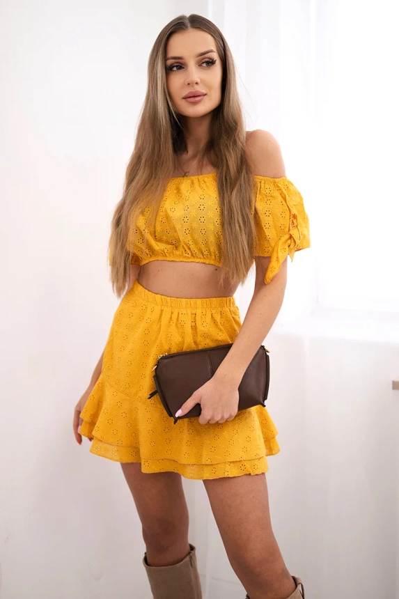 Pristatome jums palaidinės ir sijono rinkinį. Palaidinė ir sijonas supagamintas iš lengvo, patogaus audinio. Nepakeičiamas karštomis dienomis. Palaidinė su rankovių raiščiu. Rinkinys pagamintas iš aukštos kokybės medžiagos. Dydis yra universalus ir tiks moterims, nešiojančioms S, M arba L dydžio drabužius.