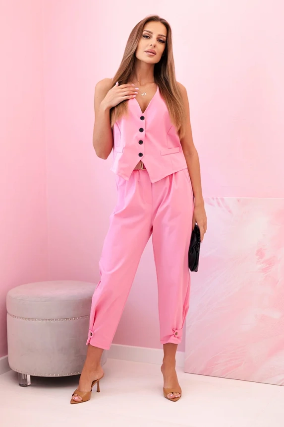 Šis unikalus komplektas sujungia klasikinę eleganciją su madingu minimalizmu, todėl tai yra puikus pasirinkimas bet kokiai progai. Liemenė su kruopščiai suprojektuotu kirpimu subtiliai pabrėžia siluetą ir suteikia aprangai elegancijos. Dėl universalaus dizaino ji gali būti dėvima tiek viena, tiek derinama su marškiniais ar palaidine. Kelnės papildo komplektą, užtikrindamos komfortą ir puikiai prisitaikydamos prie kūno linijų. Dėl kruopštaus siuvimo ir aukštos kokybės medžiagų šis komplektas garantuoja patogumą visą dieną ir puikiai tinka tiek kasdienėms, tiek elegantiškesnėms progoms. Pasirinkite liemenės ir kelnių komplektą ir sukurkite stilingą, modernų įvaizdį, kuris pabrėš jūsų pasitikėjimą savimi ir rafinuotą skonį. Dydis yra universalus ir tinkamas moterims, dėvinčioms S, M arba L dydžius.