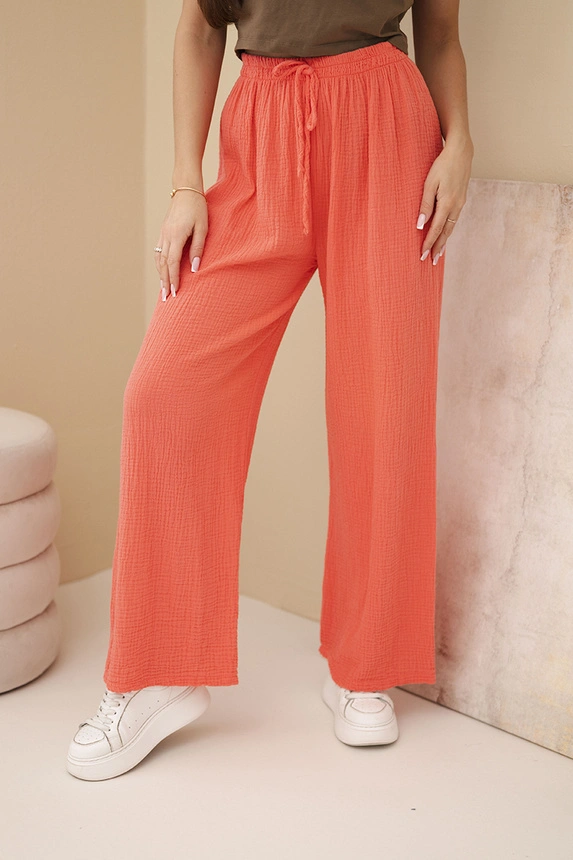 Atraskite unikalios muslino kelnės, pagamintas iš švelnios, kvėpuojančios medžiagos, kuri užtikrina neprilygstamą patogumą net ir karščiausiomis dienomis. Jų platus kirpimas suteikia visam įvaizdžiui madingą, modernų akcentą, vizualiai pailgina siluetą ir suteikia lengvumo. Puikus pasirinkimas kasdieniam dėvėjimui, darbui ar ypatingoms progoms – šios kelnės puikiai dera su įvairiais viršutiniais drabužiais, nuo minimalistinių marškinėlių iki elegantiškų palaidinių ar megztinių. Rinkitės klasikinį, bet kartu ir rafinuotą dizainą, kuris leis mėgautis tiek patogumu, tiek išskirtiniu stiliumi. Dydis yra universalus ir tinka moterims, dėvinčioms S, M arba L dydžius.