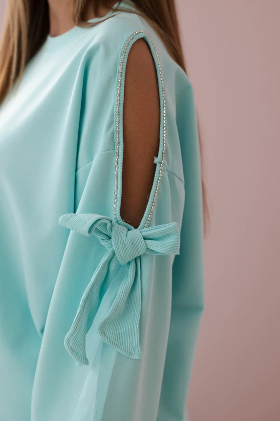 Megztinių komplektas su lankeliu ant rankovių ir antblauzdžių – žavus ir stilingas pasiūlymas moterims, kurios vertina komfortą ir madingą išvaizdą. Megztinis su lankeliais ant rankovių suteikia rinkiniui subtilumo ir mergaitiško žavesio, suteikia jam savito charakterio. Pagamintas iš minkštos ir malonios liesti medžiagos, megztinis užtikrina patogumą dėvėti visą dieną, atrodo elegantiškai ir stilingai. Lankai ant rankovių – įdomi detalė, išskirianti šį komplektą iš kitų. Šiame komplekte esantys antblauzdžiai suteikia komfortą ir judėjimo laisvę, puikiai priglunda prie figūros. Dėl elastingos medžiagos antblauzdžiai puikiai priglunda prie kūno, pabrėžia moteriškas formas. Megztinių komplektas su lankeliu ant rankovių ir antblauzdžių – puikus pasirinkimas įvairioms progoms tiek ramiems vakarams namuose, tiek atsitiktiniams susitikimams su draugais ar pasivaikščiojimui lauke. Dėl žavingo dizaino ir kokybiško darbo šis rinkinys taps nepakeičiamu jūsų garderobo elementu, suteiksiantis žavesio ir komforto bet kokiam stiliui. Dydis universalus ir tiks S, M arba L dydį dėvinčioms moterims.