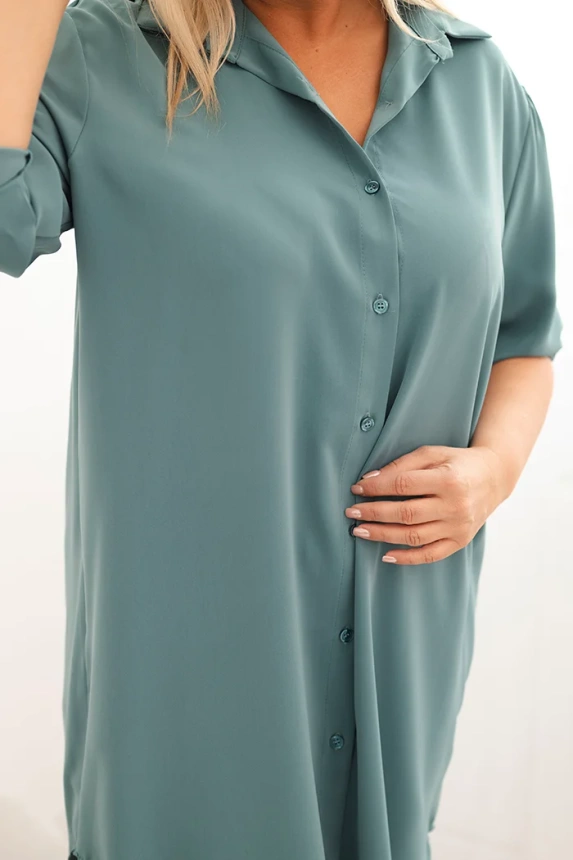 Moteriška marškininė suknelė Plus Size su ilgesniu užpakaliu ir pasukamais rankovėmis tamsiai