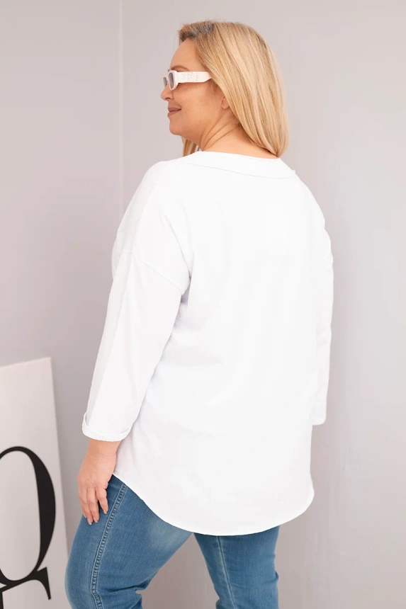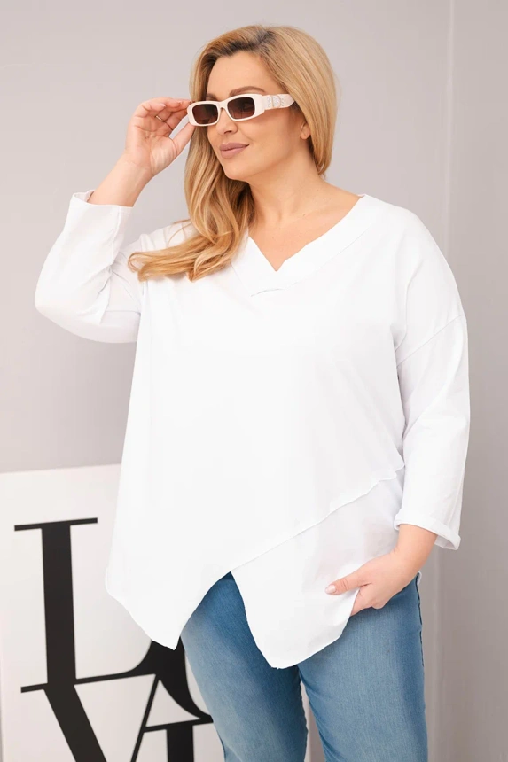 Moteriška medvilninė Plus Size palaidinė su giliu V formos iškirpimu ir asimetrine apačia