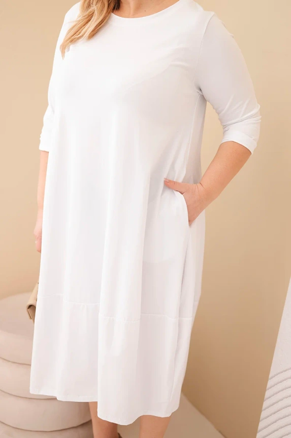 Moteriška medvilninė suknelė Plus Size su pasukamais rankovėmis ir kišenėmis