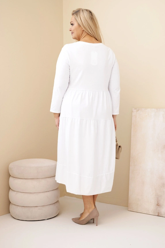 Moteriška medvilninė suknelė Plus Size su volanais ir pasukta rankove