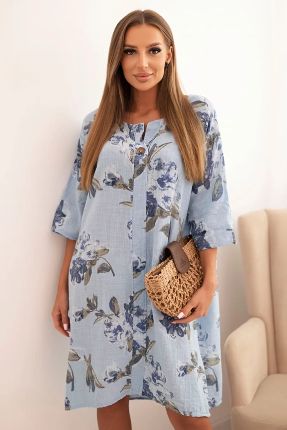 Ieškote patogios, lengvos ir moteriškos suknelės kasdienai? Ši moteriška suknelė iš malonios liesti medvilnės yra puikus pasirinkimas pavasariui ir vasarai. Švelnus gėlių raštas ir subtili spalvų paletė suteikia jai natūralų, elegantišką charakterį. Laisvas siluetas su šiek tiek nuleistomis alkūnėmis užtikrina judėjimo laisvę ir komfortą visą dieną. Ideali pasivaikščiojimams, darbui ar susitikimams su draugais. Dekolte su dekoratyviniu mygtuku ir šiek tiek asimetriška pabaiga suteikia jai ypatingo žavesio. Dydis yra universaliai tinkamas moterims, turinčioms S, M ar L dydžius.