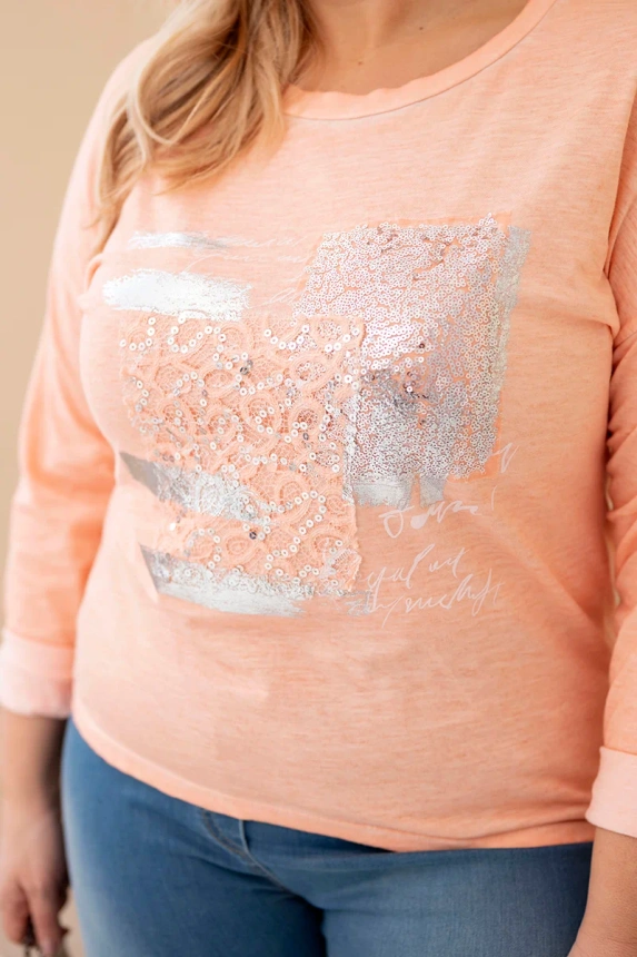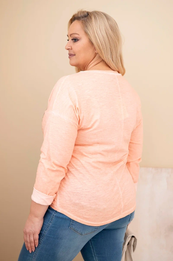 Moteriška Plus Size marškinėliai su spauda ir ilgesne nugara persikų
