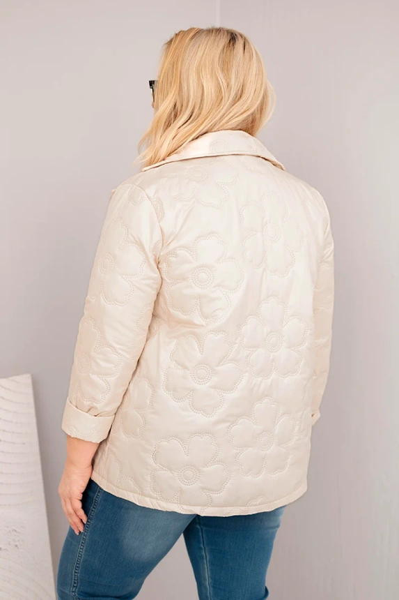 • Stilius: pūkinė striukė su gėlių reljefu