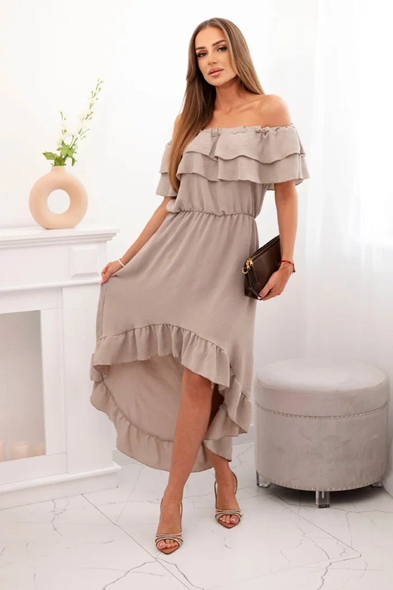 Moteriška suknelė nuo pečių su ilgesne nugara fango