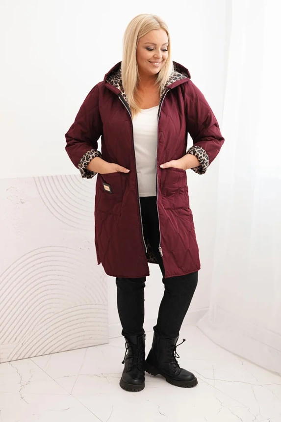 Moteriška žieminė pamušalinė striukė Plus Size su leopardiniu pamušalu ir gobtuvu