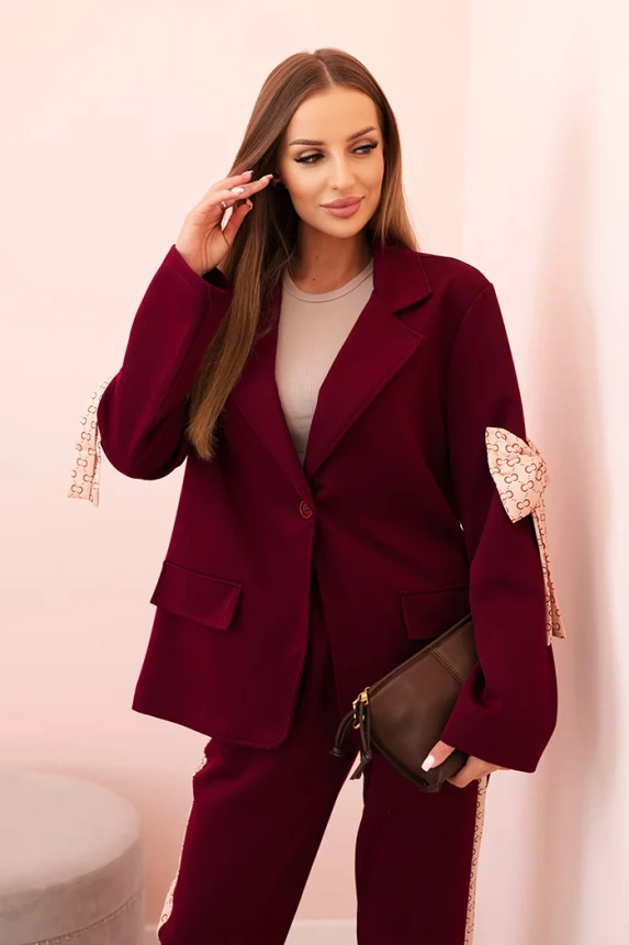 Moteriškas su viskoze – švarkas su atvartais ir kelnės su juostele slyvų