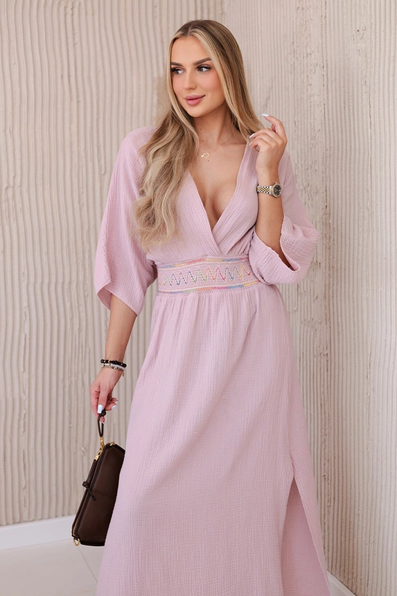 Muslininė suknelė su siuvinėjimais ties juosmeniu – tai unikalus drabužis, kuriame dera subtilumas ir rafinuotas stilius. Siuvinėta detalė ties juosmeniu suteikia suknelei subtilumo ir elegancijos, kartu pabrėžia liemenį. Pagaminta iš lengvos ir erdvios muslino medžiagos, suknelė užtikrina patogumą dėvėti net šiltomis dienomis. Jo išskirtinumas slypi romantiško siuvinėjimo derinyje su muslino lengvumu, suteikiančiu visam stiliui nepakartojamo žavesio. Puikiai tinkanti vasaros susitikimams, romantiškiems vakarams ar ypatingoms progoms, ši suknelė leis jaustis moteriškai ir ypatingai, suteiks jūsų stiliui subtilumo ir elegancijos. Dydis universalus ir tiks S, M arba L dydį dėvinčioms moterims.