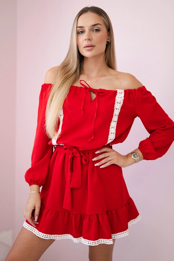 Suknelė su atvirais pečiais ir nėriniais