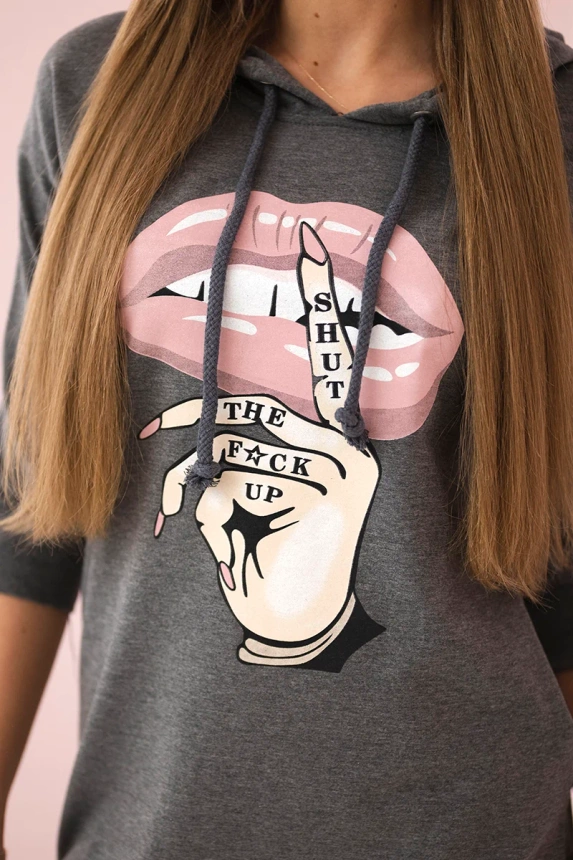 Pristatome jums patogią suknelę. Suknelė su gobtuvu ir madingu spalvotu raštu. Suknelė su ilgesne nugara. Labai įdomus pasiūlymas visoms moterims. Suknelė pagaminta iš aukštos kokybės medžiagos. Dydis yra universalus ir tiks moterims, nešiojančioms S, M arba L dydžio drabužius.