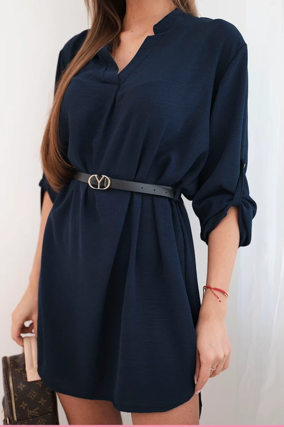 Suknelė su ilgesniu nugara ir diržu