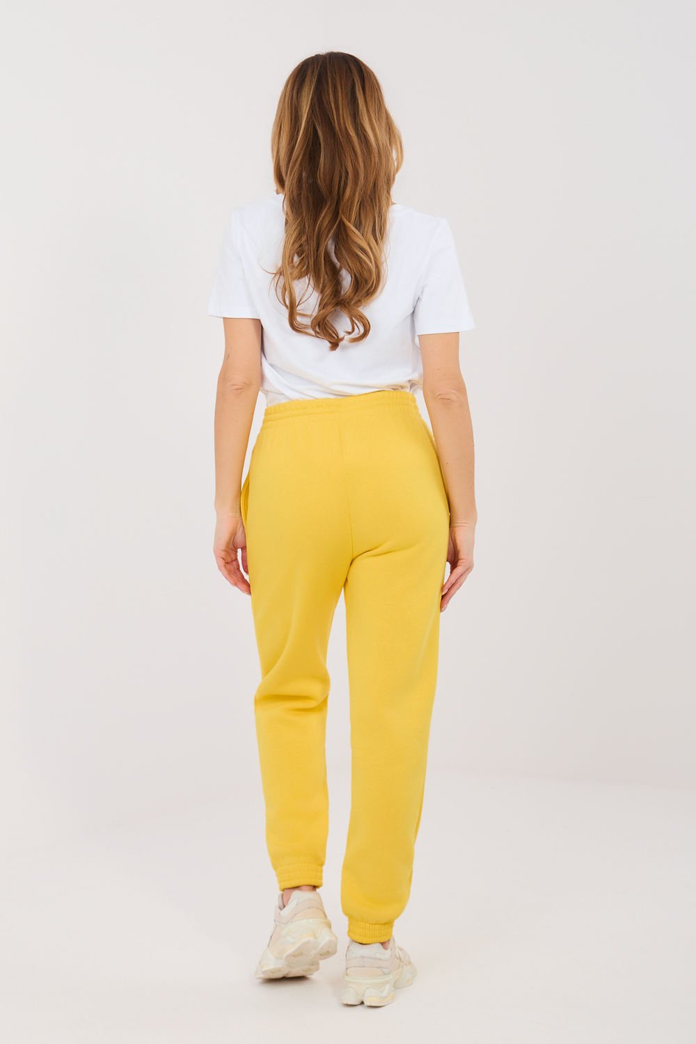 Stylish jogger sweatpants are the perfect combination of comfort and trendy, sporty character. They will work perfectly both for everyday wear and during physical activity or weekend relaxation. The smooth pattern gives them universality, making it easy to match them with a hoodie, T-shirt, or sporty jacket. The high-waisted model ensures comfort and great fit to the silhouette. There is a practical tie in the waist, allowing for individual adjustment and perfect positioning at the waist. Side pockets increase functionality, allowing you to easily store the most necessary items in them. The legs are finished with elastic cuffs, which emphasize the sporty style and prevent the material from rolling up. The pants are made of high-quality cotton and polyester blend, guaranteeing durability, softness, and comfort. Additional insulation makes the model perfect for colder days, providing pleasant warmth. This practical and timeless piece of clothing is ideal for women who appreciate comfort and a casual style.